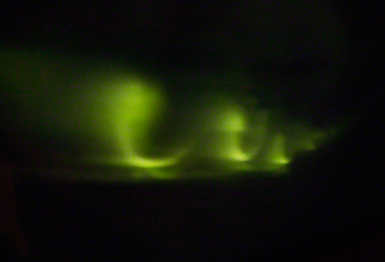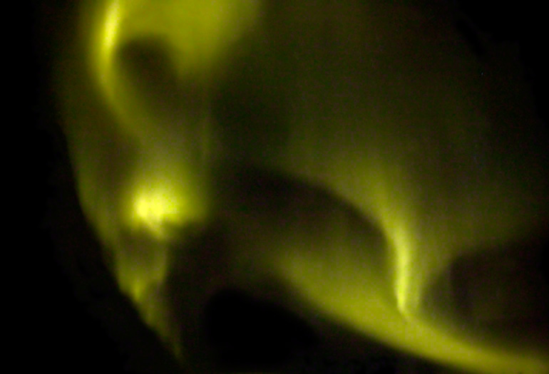 Die beeindruckendste Leuchterscheinung in der Atmosphäre ist die Aurora Borealis, das Polarlicht, das als Aurora Australis auch am Südpol existiert. Der Sonnenwind, ein Elektronenstrom aus den Wasserstoffexplosionen auf der Sonnenoberfläche, wird vom Erdmagnetfeld in die Erdatmosphäre umgelenkt und trifft dort auf Atome unserer Atemluft. Dabei entstehen diese magischen, ätherischen Gebilde aus Licht.